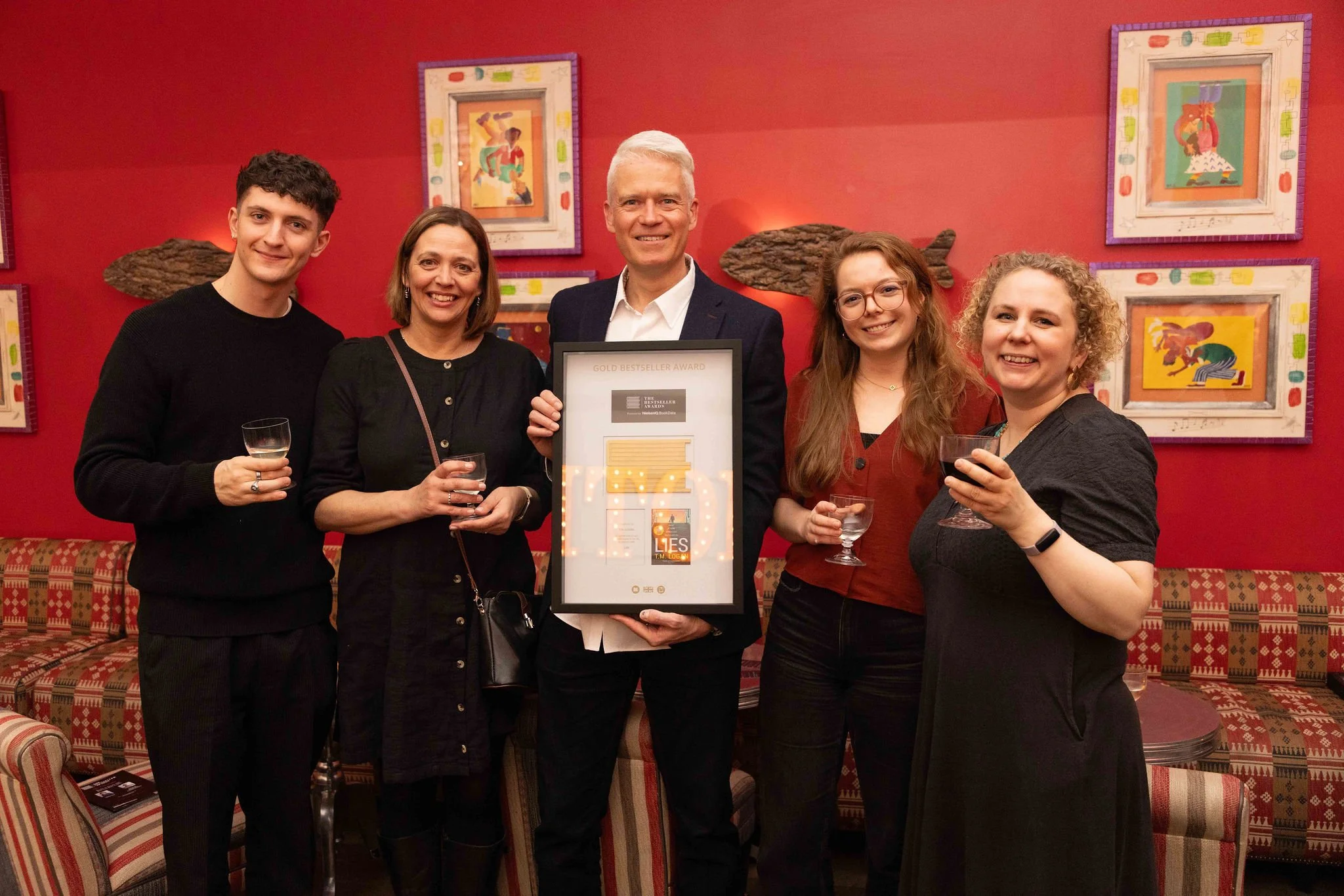 Later that day, I headed over to Soho for the Nielsen Bestseller Awards, where my debut novel Lies was awarded a Gold award for 500,000 copies sold in the UK. Lies had won silver in 2019 (for 250,000 copies) and I remember thinking back then that it would probably be my one and only visit to these Awards – so being there again was an unexpected joy. My wife Sally and son Tom (left of this photo) were able to join me for the evening which made it extra special 😊