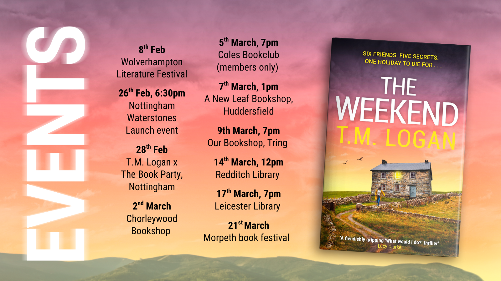 As ever, pre-orders of The Weekend are hugely important to me as they play such a big part in the reception of a new book, and whether it will sink or swim when it comes out. So if you can possibly help me out by pre-ordering my brand new thriller, I would really appreciate it – thank you.
